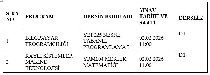 Tek ders sınavları aşağıda belirtilen tarih, saat ve dersliklerde yapılacaktır.