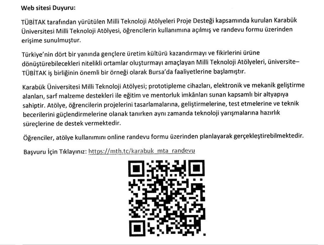 Karabük Üniversitesi Milli Teknoloji Atölyesi Projesi