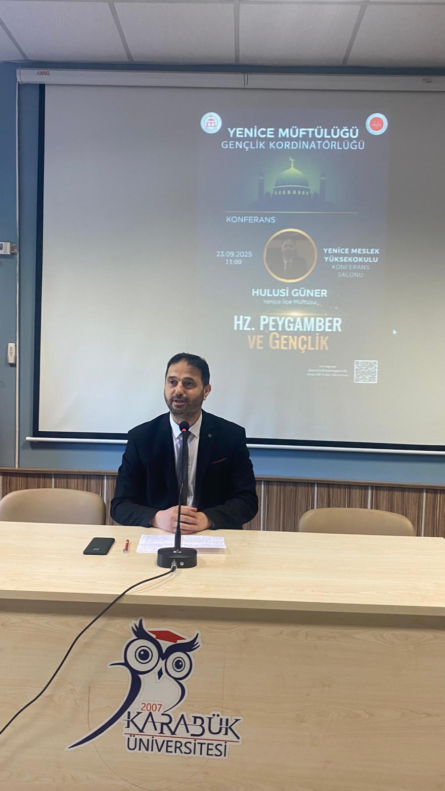 Mevlid-i Nebi Haftası münasebetiyle Doğumunun 1500. Yılında Alemlere Rahmet Hz. Muhammet (s.a.v.) temasıyla İlçe Müftüsü Hulusi GÜNER'in katılımıyla 23 Eylül 2025 Salı günü saat 11:00'de "Hz. Peygamberimiz ve Gençlik" konusunda meslek yüksekokul öğrencilerimize konferans düzenlenmiştir.